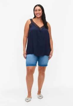 Zizzi Mit Rundhalsausschnitt Und Spitzenrand – Top – Bright White